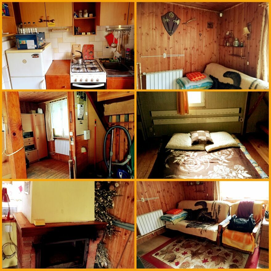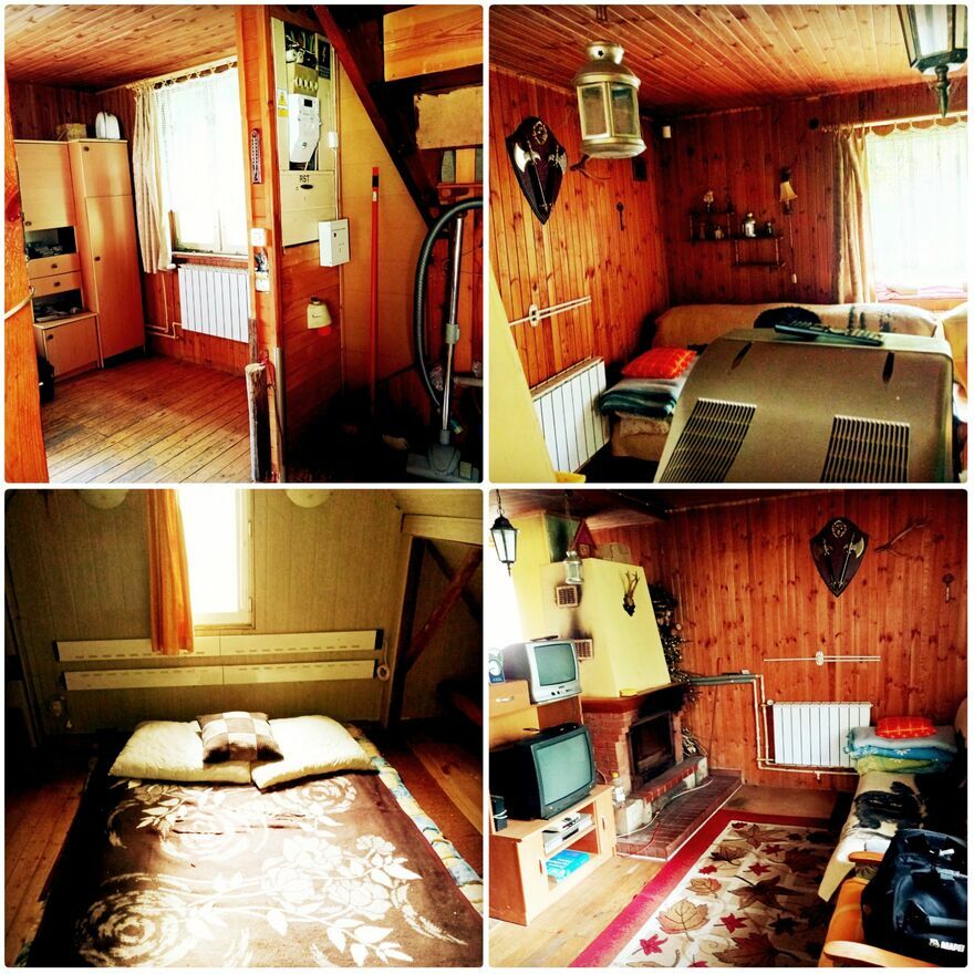 Pierwszy dom - w środku wystrój jak leśniczówka, boazeria dębowa, kominek, bardzo przytulny.