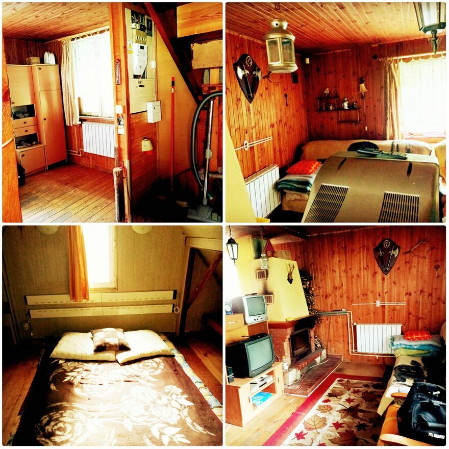 Pierwszy dom - w środku wystrój jak leśniczówka, boazeria dębowa, kominek, bardzo przytulny.